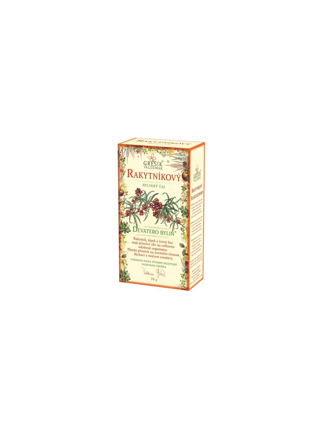 Složení: rakytník plod 60 %, vřes nať, šípek 8 %, jablka, bez černý květ 3 %, divizna květ, lípa květ, dobromysl nať, sedmikráska květ