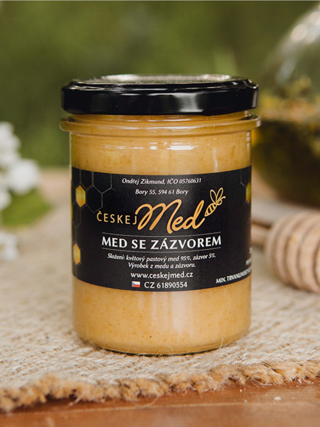 Složení: Květový pastový med 95%, zázvor sušený 5%.