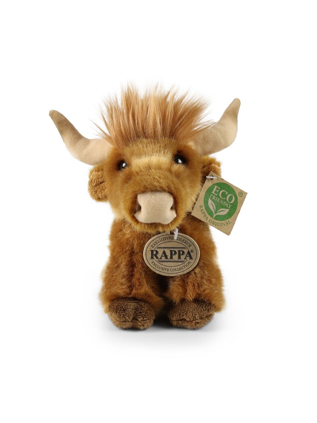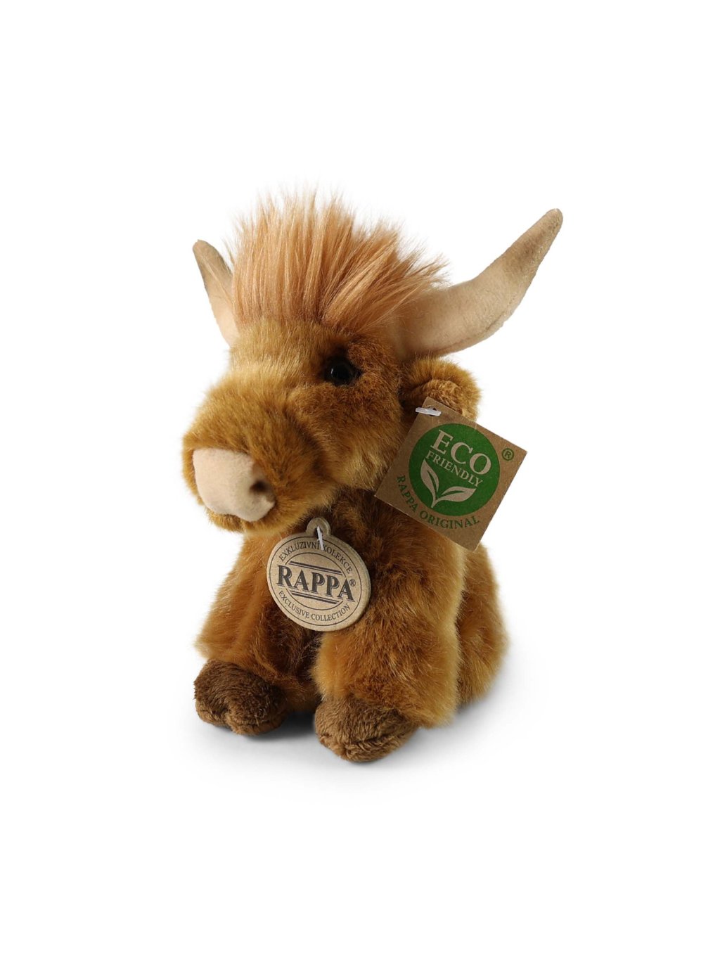 Představujeme kvalitní a ekologicky šetrnou plyšovou krávu ve formě skotského náhorního skotu, který v sobě spojuje realistický vzhled, příjemný dotek a design, který potěší malé i velké milovníky plyšových zvířátek. Tento plyšový skotský náhorní skot o velikosti 16 cm je vyroben z měkkého, hebkého plyše a patří do kolekce ECO-FRIENDLY značky Rappa, což znamená, že jeho výplň je vyrobena z recyklovaných PET lahví – šetrných k přírodě a bezpečných i pro nejmenší děti.