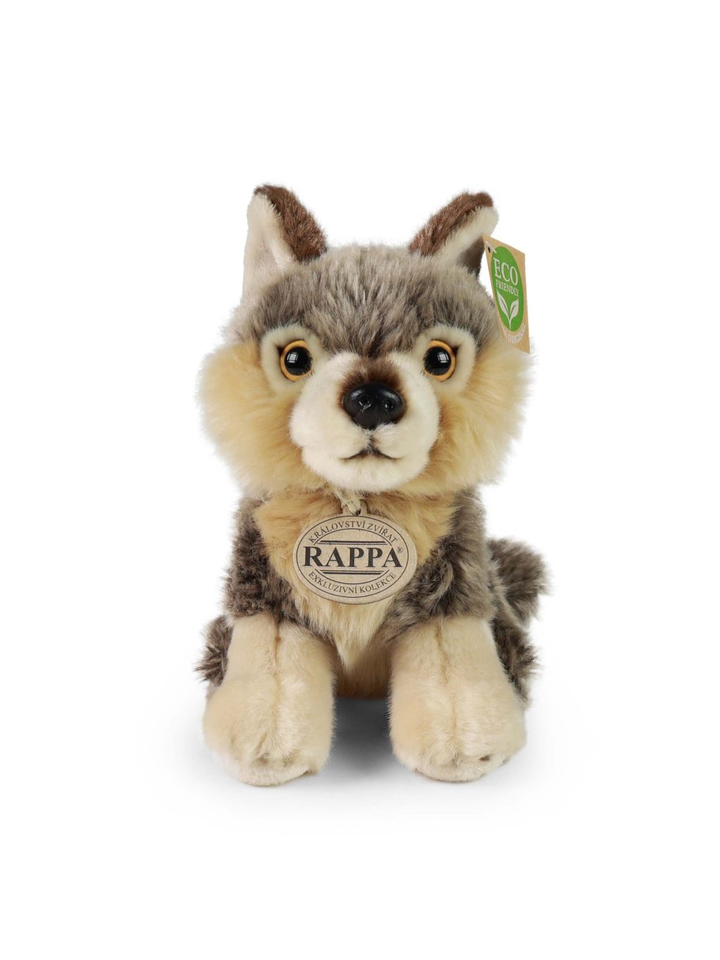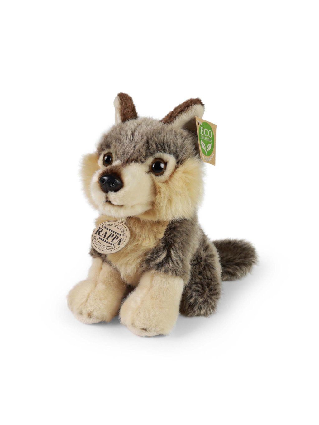 Tento roztomilý vlk o velikosti 18 cm je vyroben z vysoce kvalitního plyše, díky čemuž je měkký, příjemný na dotek a zároveň odolný. Je součástí exkluzivní kolekce plyšových hraček RAPPA, která se pyšní nejen krásným designem, ale i šetrností k naší planetě.